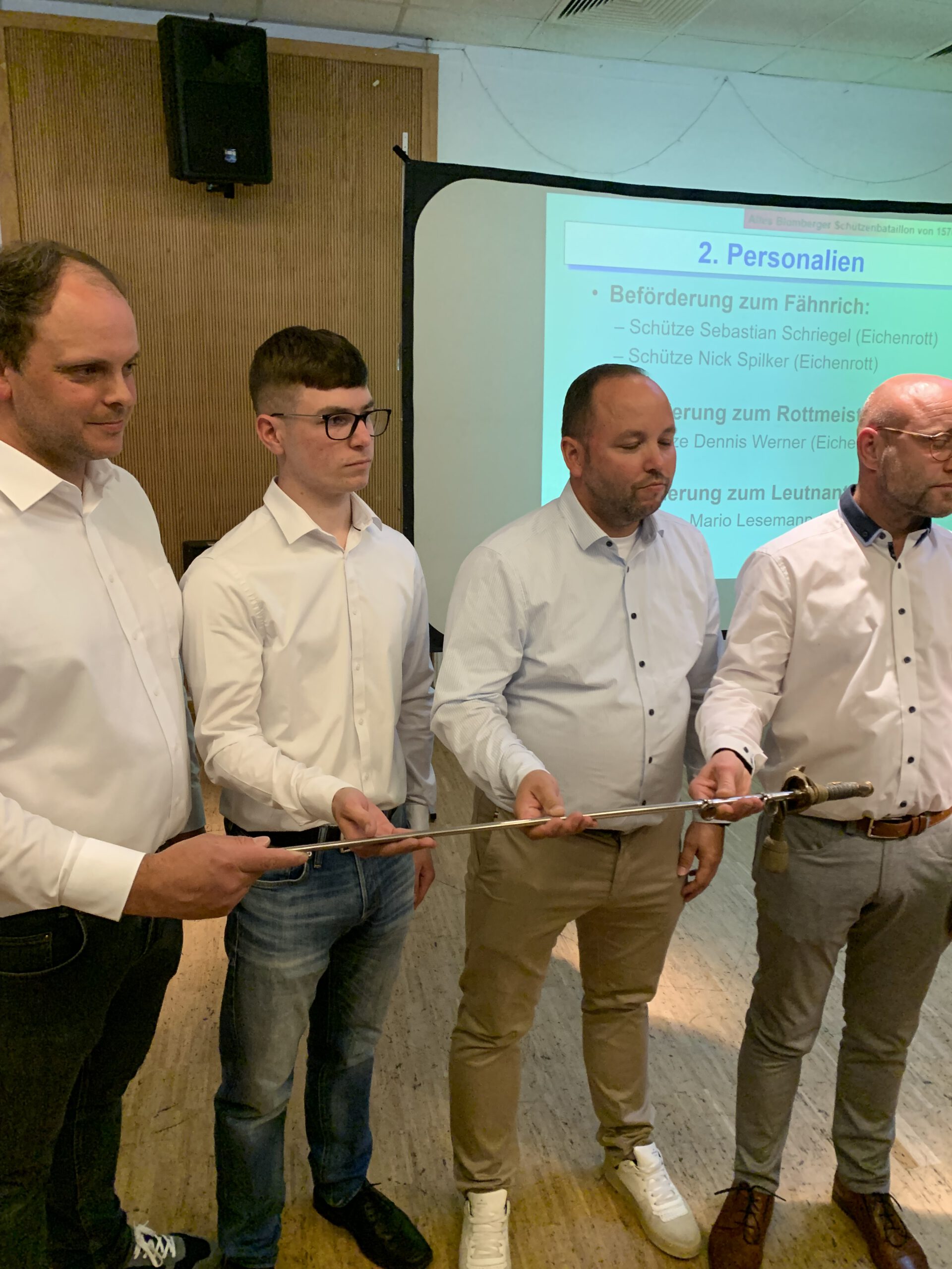 Auf der letzten Offiziersversammlung vor der Schützenfest wurden einige Personalien bekanntgegeben. Neben den Rottführerwechseln, welche im Rahmen des Festaktes am Schützenfest-Freitag erfolgen, und einigen Beförderungen, wurden vier Schützenbrüder in den Offiziersstand berufen und vereidigt.